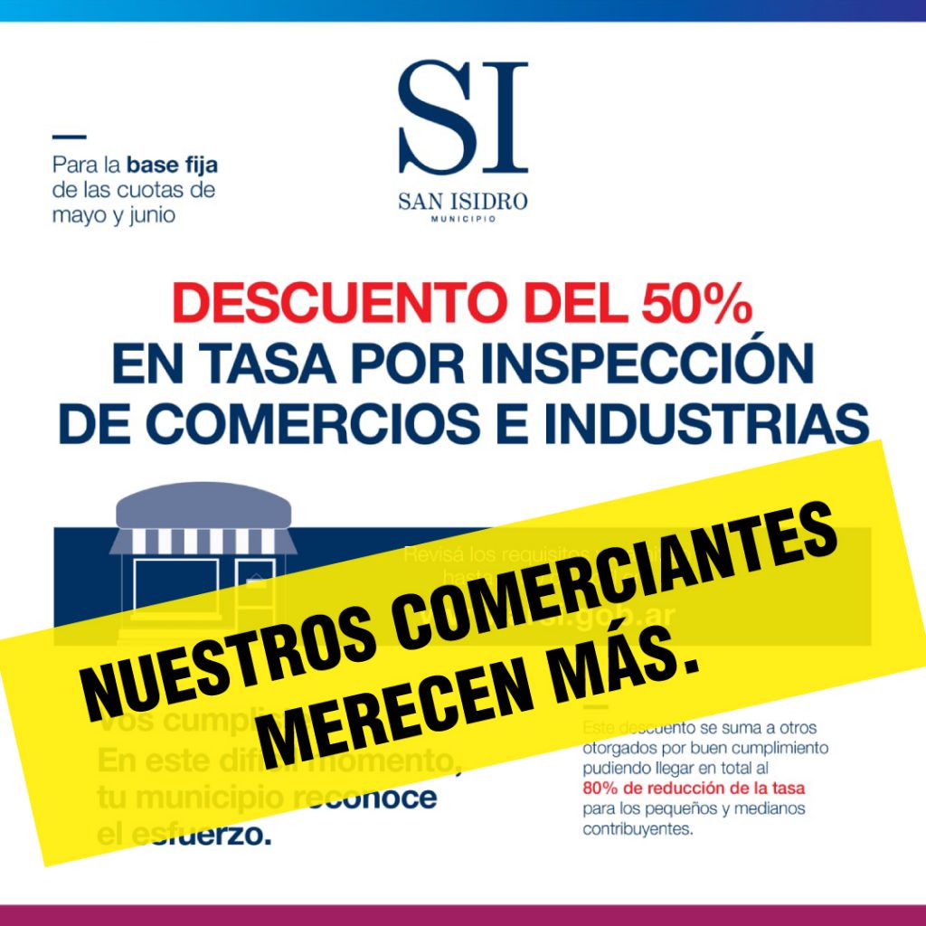 Descuento en tasa por Inspección Comercio e Industria en San Isidro: Es un comienzo, pero no es suficiente. Nuestros vecinos merecen más.